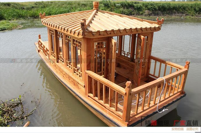 現貨木質玻璃鋼六角單亭木船 仿古電動手劃觀光旅游釣魚捕漁船